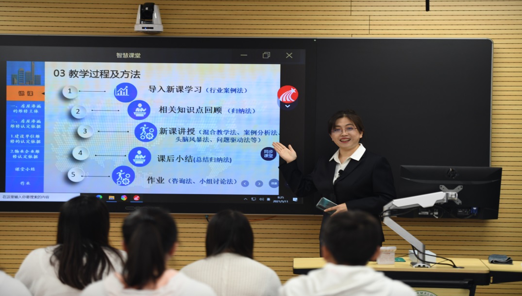 在整个参赛过程中穆老师在学校及学院专家的悉心指导下,精心准备参赛内容、认真听取多方意见,紧紧围绕“立德树人”根本任务,以课程组四年来精心创作的独立SPOC课程—《房屋管理与维修》为主线进行汇报展示,教学中融入智慧化教学方法及手段,运用过程性考评等改革措施,满足学生多样化、个性化学习需求,旨在将学生培养成为契合行业转型发展、满足企业岗位需求的高素质创新人才。