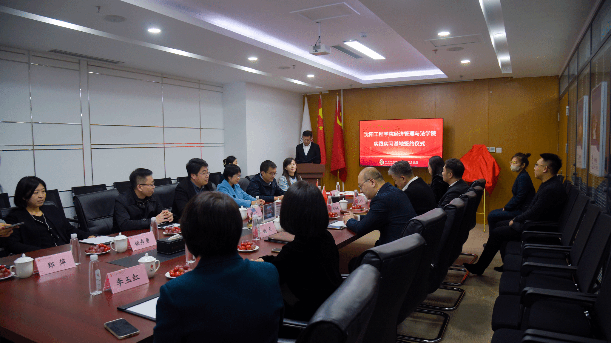 随后,北京市京师(沈阳)律师事务所执行主任王辰代表律所介绍了律所目前的发展历程、规模人数、特色优势、业务领域、现有专业部门及青年律师的培养计划等;王辰主任表示,京师沈阳律所一直专注于青年律师培养工作,注重同高校间的交流与合作。希望此次校企双方,通过合作在人才培养、实践教学、律所品牌宣传等方面加强交流,实现互利共赢。并表示律所将在专业培训、律师帮带、业务优势等方面实现对学院实践教学、实习实训、毕业生就业提供帮助与支持。
