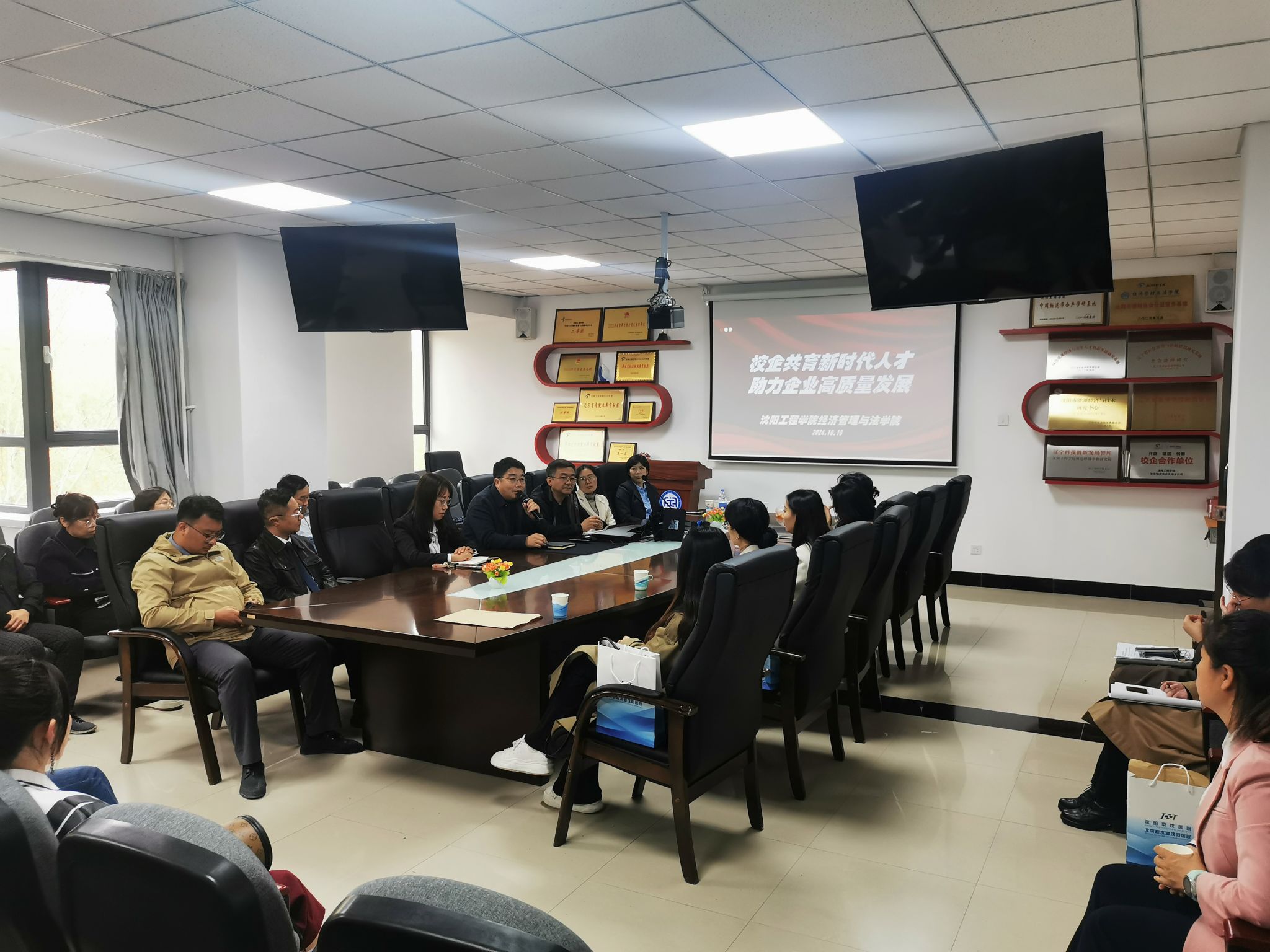 10月18日下午,伟德国际victor1946在教学D座407会议室,举办“校企共育新时代人才,助力企业高质量发展”座谈会。上海永升服务管理有限公司东北区域人力资源行政部总监刘美、金地智慧服务集团东北区域公司高级人力资源经理刘超、沈阳万科物业服务有限公司招聘负责人蒋诗洋、佳兆业美好集团辽宁分公司人力资源经理马秋月、沈阳龙湖物业服务有限公司沈西事业部皇姑1片区负责人武谊应邀参会。伟德国际victor1946长安玉兴、物业管理专业负责人王海燕以及物业系全体专任教师出席座谈会。会议由就业总指导员亓俊主持。