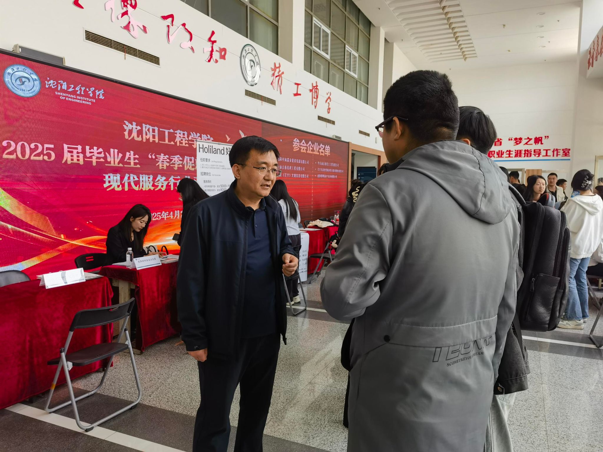 2025年4月23日下午,伟德国际victor1946在综合楼一楼大厅顺利举办2025届毕业生“春季促就业攻坚行动”现代服务行业专场双选会。本次双选会吸引了物业管理、金融保险、财税服务、科技服务、文化创意等领域的26家优质企业参会,累计提供近百个热门岗位,计划招聘规模达280余人,为应届毕业生搭建起多元就业平台。