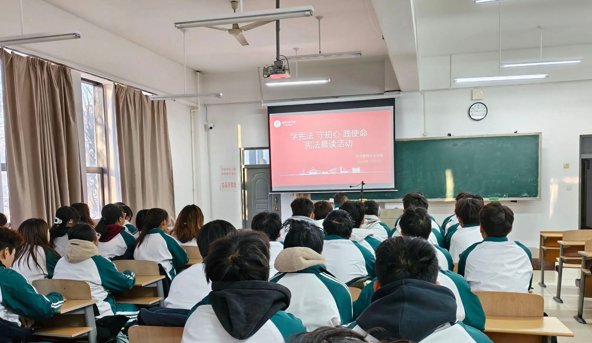 “学宪法、守初心、践使命”宪法晨读活动于12月2日在教学楼D座举行。一日之计在于晨,本次活动采取了集体晨读的方式,诵读《中华人民共和国宪法》。朗朗书声回荡教学楼,我院学子在诵读中,深切体悟宪法精神的精髓,让法治精神在心中扎根。