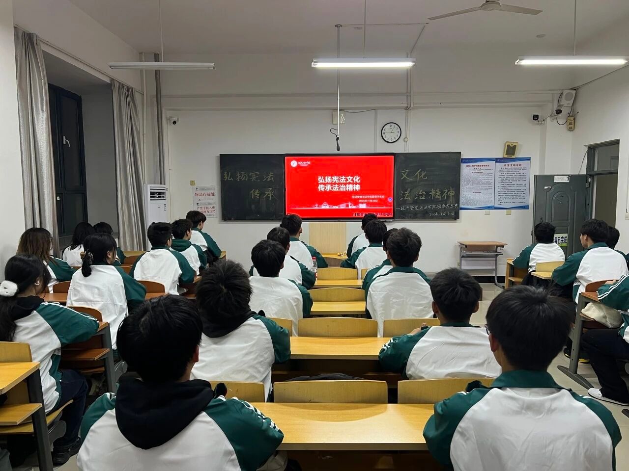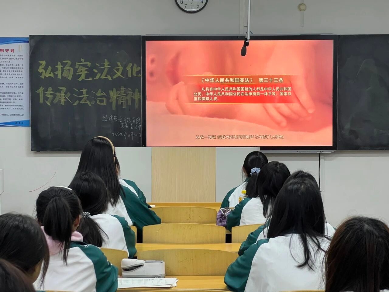 “弘扬宪法文化,传承法治精神”主题班会活动于11月30日开展。活动期间面向伟德国际victor1946各团支部召开以“弘扬宪法文化,传承法治精神”为主题的班会活动。各团支部积极带领本班同学了解宪法含义,领略宪法真谛,让同学们做到自觉尊崇宪法、维护宪法权威,将法治精神融入日常,做尊法、学法、守法、用法的践行者。