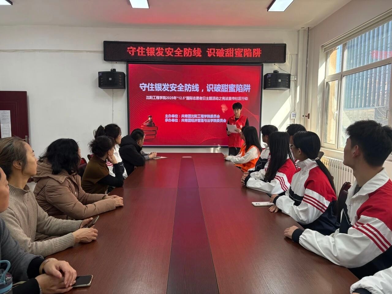 “学宪法、讲宪法社区行动”志愿活动于12月4日在沈阳市沈北新区正良街道书香里社区开展。我院志愿团深入社区,以“守住银发安全防线,识破甜蜜陷阱”为主题,向社区老人们讲解常见诈骗案例,增强老人们的反诈意识,并在社区进行清扫活动。本次活动既深化了同学们的法治认知,也坚定了同学们以实际行动践行宪法精神、担当社会责任的信念。