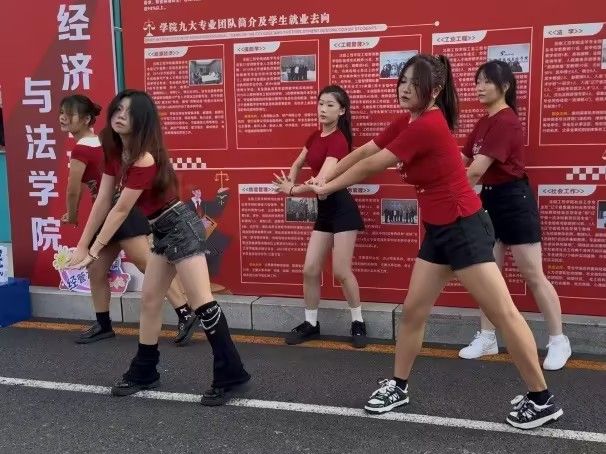 便民补给与文化氛围:签到处周边贴心设置临时水站,为奔波的新生及家长提供休憩空间与饮水补给;学院舞队也来到现场表演,活力满满的舞蹈为新生注入热情,营造出轻松愉悦的迎新氛围。