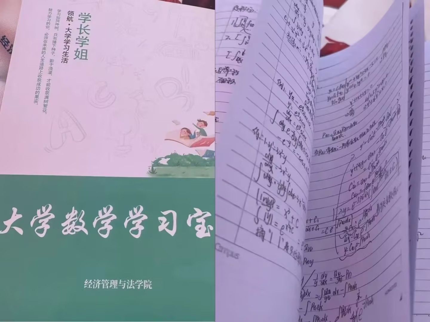 另一份是“学哥学姐”传帮带。每位新生还能领到一份特殊的“学习宝藏”:由高年级学哥学姐亲笔书写的微积分、大学英语四级笔记。工整的纸页上,有逻辑清晰的公式推导思路,有细致圈画的英语高频考点,甚至有随手写下的“解题小技巧”“背单词妙招”。这些带着温度的字迹,不是冰冷的印刷资料,而是学长学姐走过迷茫后留下的“避坑指南”,是跨越年级的经验传递,更是“传帮带”优良学风的具象化表达。