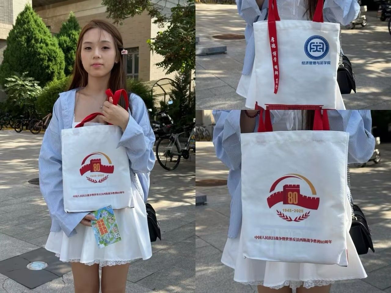 一份是“红色印记”定制礼。现场设置趣味抽奖环节,奖品为学院专属打造的“纪念中国人民抗日战争暨世界反法西斯战争胜利80周年”主题帆布包。包身以沉稳色调勾勒历史记忆,将抗战精神与校园红色基因镌刻其上,让新生在潜移默化中铭记历史、传承精神,这份独特的入学纪念,也成了他们与学校红色底蕴的第一次深度联结。