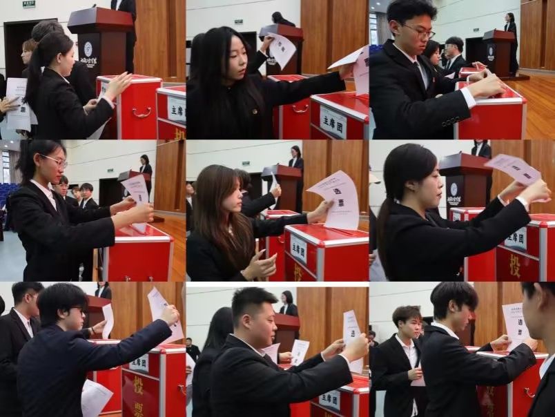 集硕勋,广纳贤良续华章。会议审议并全票通过《伟德国际victor1946学生代表大会选举办法(草案)》,确定监票人与计票人,确保选举环节规范有序。当众检查票箱、清点人数与选票。经规范投票与计票,大会选举杨洺、钟昊然、杨舒涵3名同学为伟德国际victor1946新一届学生会主席团成员,同时评选杨舒涵等16名同学为出席校级学生代表大会的代表。
